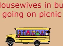 Housewives in bus going on picnic